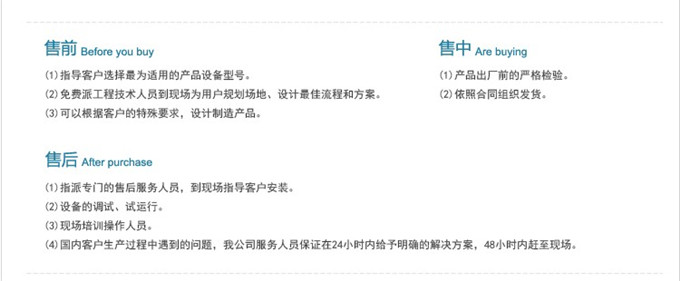 13.關(guān)于客服:如您有意購買設(shè)備,請及時聯(lián)系我方負責人,在線或者電話溝通,詢問需購買的設(shè)備的尺寸、產(chǎn)量及注意問題等,以方便我們向您推薦合適的設(shè)備,減少和避免貴方購買設(shè)備時造成的成本浪費,長期持續(xù)地為您節(jié)約成本、提升產(chǎn)品品質(zhì)。