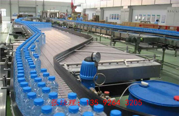 純凈水制水設(shè)備.吹瓶機(jī).理瓶機(jī).進(jìn)瓶風(fēng)道.礦泉水灌裝設(shè)備.自動(dòng)上蓋機(jī).在線(xiàn)式瓶蓋消毒器.出瓶輸送.燈檢設(shè)備.噴碼機(jī).套標(biāo)機(jī)(或貼標(biāo)機(jī)).膜包機(jī)(或紙箱包裝機(jī)).碼垛機(jī)。
