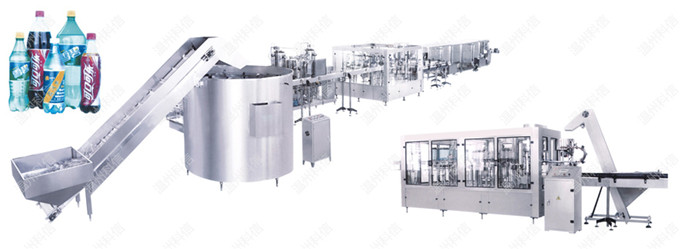 溫州科信全自動含汽碳酸飲料生產(chǎn)線適用于生產(chǎn)350ml、500ml、1L等容量的含有二氧化碳?xì)怏w的飲料,整線主要包括水處理設(shè)備、吹瓶設(shè)備、配料、混合設(shè)備、冷卻設(shè)備、灌裝設(shè)備、燈檢設(shè)備、溫瓶設(shè)備、吹干設(shè)備、噴碼設(shè)備、標(biāo)簽設(shè)備、包裝設(shè)備。根據(jù)市場的實際需求,以500ml瓶子計算,本公司提供的碳酸飲料生產(chǎn)線設(shè)備產(chǎn)量可達(dá)2000瓶/時~24000瓶/時。