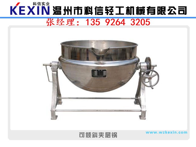 夾層鍋又名蒸汽鍋、蒸煮鍋、夾層蒸汽鍋。通常由鍋體和支腳組成。鍋體是由內(nèi)外球形鍋體組成的雙層結構形式,中間夾層通入蒸汽加熱。有固定式、可傾式、攪拌式等樣式。夾層鍋具有受熱面積大、熱效率高、加熱均勻、液料沸騰時間短、加熱溫度容易控制、外型美觀、安裝容易、操作方便、安全可靠等特點。夾層鍋廣泛應用于各類食品的加工,也可用于大型餐廳或食堂熬湯、燒菜、燉肉、熬粥等,是食品加工提高質(zhì)量、縮短時間、改善勞動條件的良好設備。