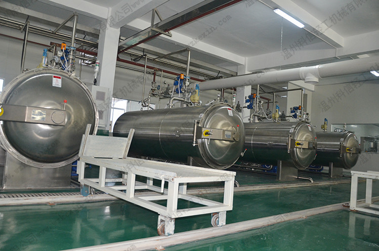 科信機械生產(chǎn)的殺菌鍋是一種間歇工熱水殺菌設備,它用高溫壓的熱水作加熱介質(zhì),對已包裝的食品進行滅菌。在滅菌的過程中,為使食品迅速均勻受熱,可采限熱水強制循環(huán)、食品包裝物回轉(zhuǎn)或熱水噴淋等措施,從而對食品進行高溫短時間滅菌這樣可使食品保持更佳的品質(zhì)、風味和色澤,更大限度的保持食品的營養(yǎng)成份。