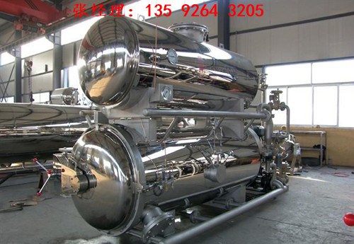 一般罐頭食品廠對罐頭作常壓水煮加熱滅菌處理時都采用本形式的臥式滅菌鍋,本設(shè)備通過引入壓縮空氣可實現(xiàn)反壓滅菌。如冷卻需在鍋內(nèi)進(jìn)行,須用水泵打入鍋頂部的噴水管(或采用水循環(huán)系統(tǒng))。在滅菌時,由于加熱使罐頭溫度升高,罐頭內(nèi)壓力會超過罐外(在鍋內(nèi))的壓力。因此,為了避免滅菌時玻璃瓶罐內(nèi)增壓而跳蓋,對馬口鐵罐兩端面凸出,必須施加反壓力,特別是對需要較高滅菌溫度的肉類罐頭更就如此。使用反壓力滅菌,即是用壓縮空氣通入鍋內(nèi)增加壓力,防止罐頭凸罐和跳蓋,其操作情況分述如下: