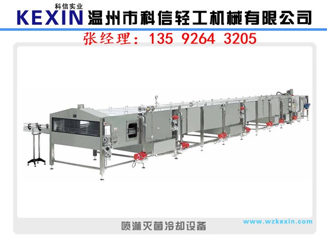 噴淋滅菌機,采用循環(huán)熱水噴淋滅菌、溫水預(yù)冷、冷水冷卻等多段處理,具有節(jié)水、節(jié)熱能等優(yōu)點。